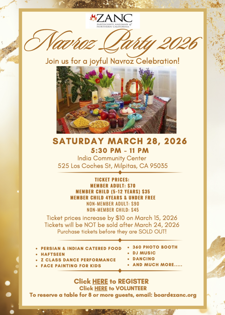 The ZANC Board cordially invites you to our Annual General Meeting (AGM), Lunch and a Special General Body Meeting to discuss the proposed changes to the ZANC Bylaws, on Saturday, March 7, 2026 at 11 AM, at the Dar-e-Mehr.